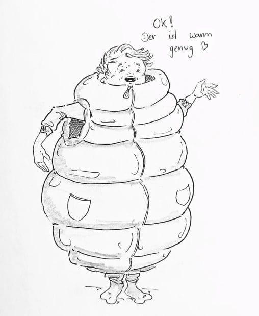 Am Wochenende noch geschwitzt, da sollte man sich über eine kleine Abkühlung freuen oder? Meine Frau hat erstmal den #Speckmantel aus dem Schrank geholt. 🥓🐖🧥#kopfprojekt #blog #life #diary #tagebuch #zettelfan #zeichnen #zeichnung #bildchen #skizze #skribble #scribble #kritzelei #comic #drawing #illustration #painting #artbook #sketch #sketchbook #doodle #draft #inkdrawing