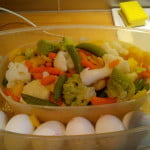 4. Energieschonend! Wenn ich Fleisch, Reis, Gemüse und Eier gleichzeitig fertig haben wöllte, müsste ich vier Herdplatten bemühen und eine ganze Menge Energie verpulvern.