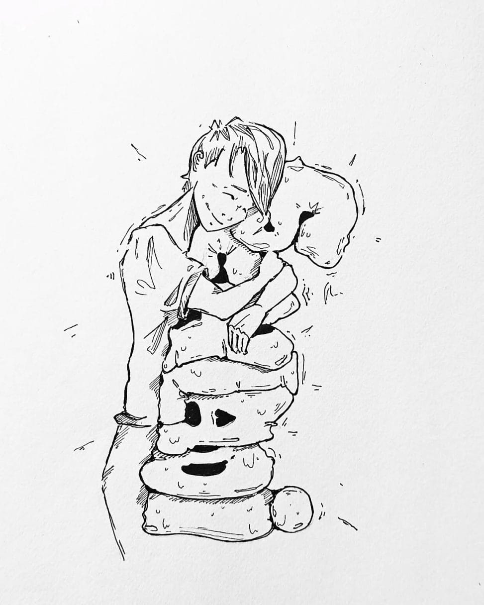 Das die beiden mal Freunde werden hätte ich nicht gedacht. Ich denke, es lag an der Oster-Schokolade #kopfprojekt #schladi #blog #life #diary #tagebuch #zettelfan #zeichnen #zeichnung #bildchen #skizze #skribble #scribble #kritzelei #comic #drawing #illustration #painting #artbook #sketch #sketchbook #doodle #draft #inkdrawing