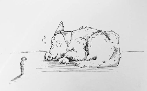 Vielleicht wars doch eine Nummer zu groß? Heute komplett zerstört aufgestanden, gestern im Garten komplett übertrieben, Gehirn jetzt schon kompletter Smoothie. Vom Wetter reden wir erst gar nicht. #Montag ich komme …#kopfprojekt #blog #life #diary #tagebuch #zettelfan #zeichnen #zeichnung #bildchen #skizze #skribble #scribble #kritzelei #comic #drawing #illustration #painting #artbook #sketch #sketchbook #doodle #draft #inkdrawing
