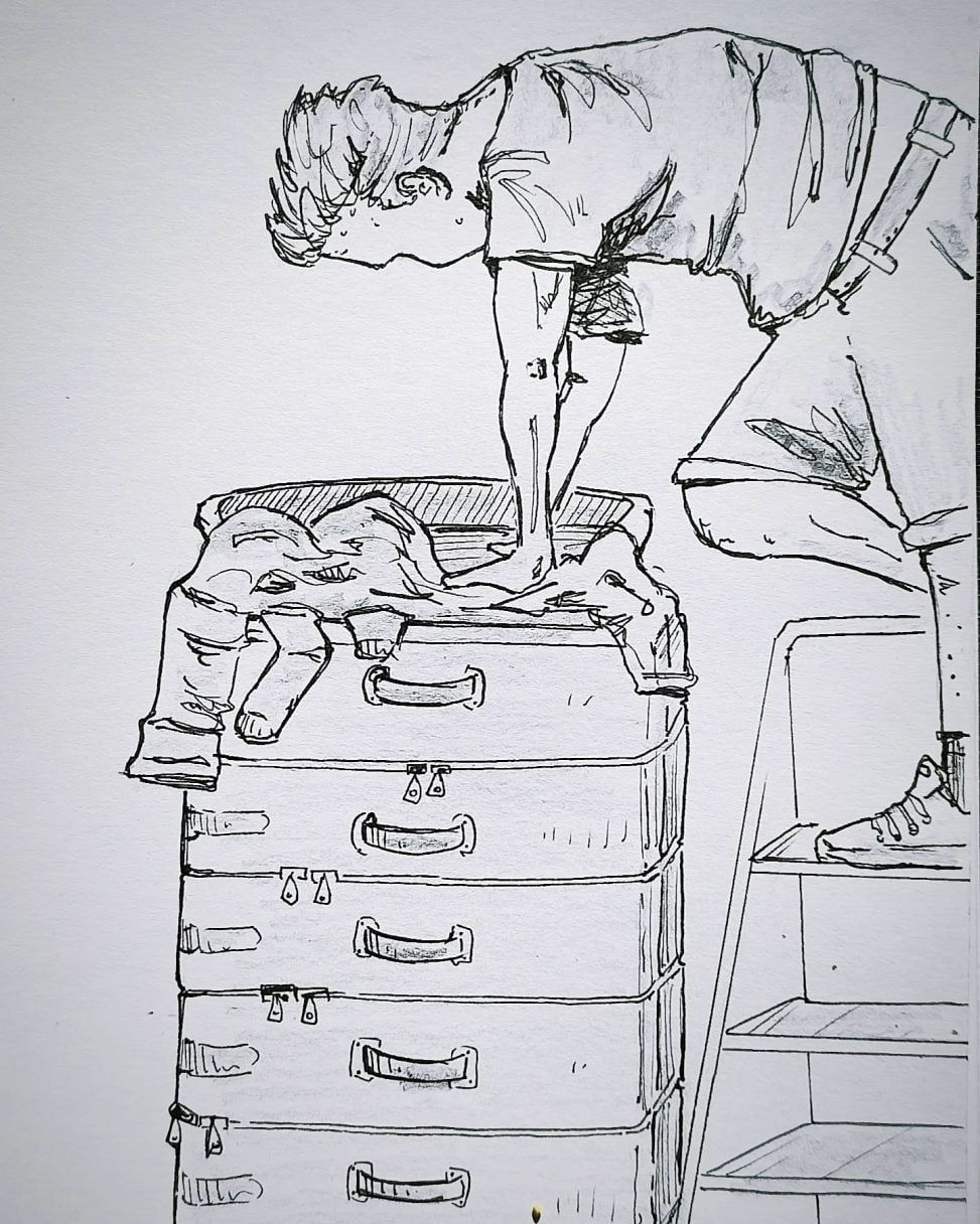 Toll diese Koffer mit der Funktion, hier und da noch etwas extra mit hineinzuquetschen … Der Urlaub kann kommen! #kopfprojekt #blog #life #diary #tagebuch #zettelfan #zeichnen #zeichnung #bildchen #skizze #skribble #scribble #kritzelei #comic #drawing #illustration #painting #artbook #sketch #sketchbook #doodle #draft #inkdrawing